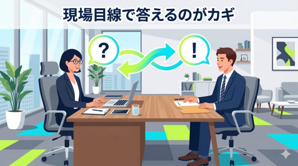 ここからは、2次面接で頻出の質問と、現場マネージャーに刺さる答え方を解説します。