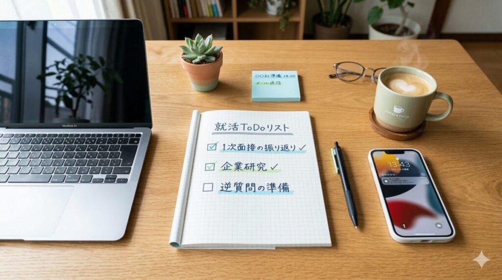 - 準備が9割。1次面接の振り返りと企業研究を徹底する