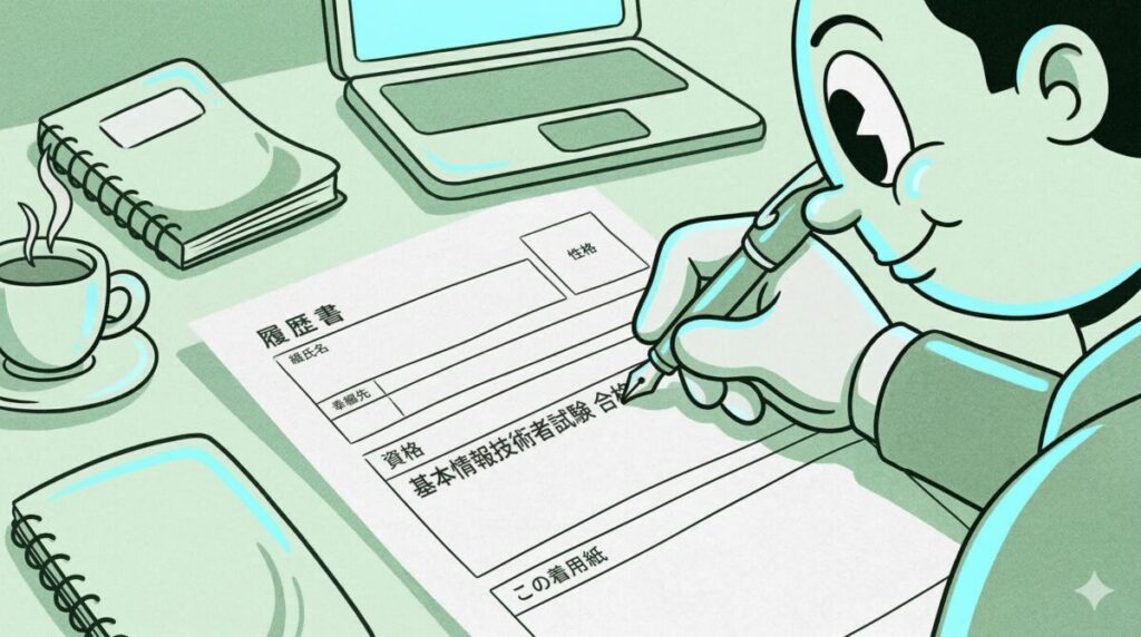 履歴書の資格欄に取得順で記載し、職務経歴書の自己PR欄では「まずITパスポートで全体像を学び、次に基本情報で技術的な基礎を固めた」というストーリーとして語るのが最も効果的です。