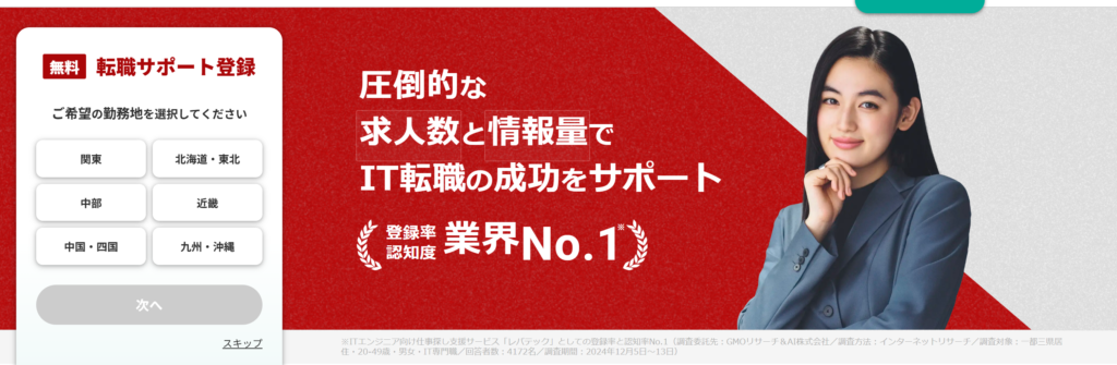 レバテックキャリアは、IT・Web業界に特化した転職エージェントです。