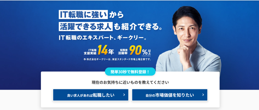 Geeklyは、IT・Web・ゲーム業界に特化した転職エージェントです。
