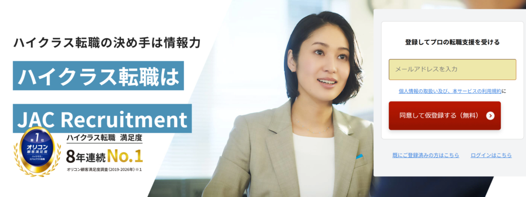 JACリクルートメントは、年収600万円以上のハイクラス転職に強いエージェントです。
