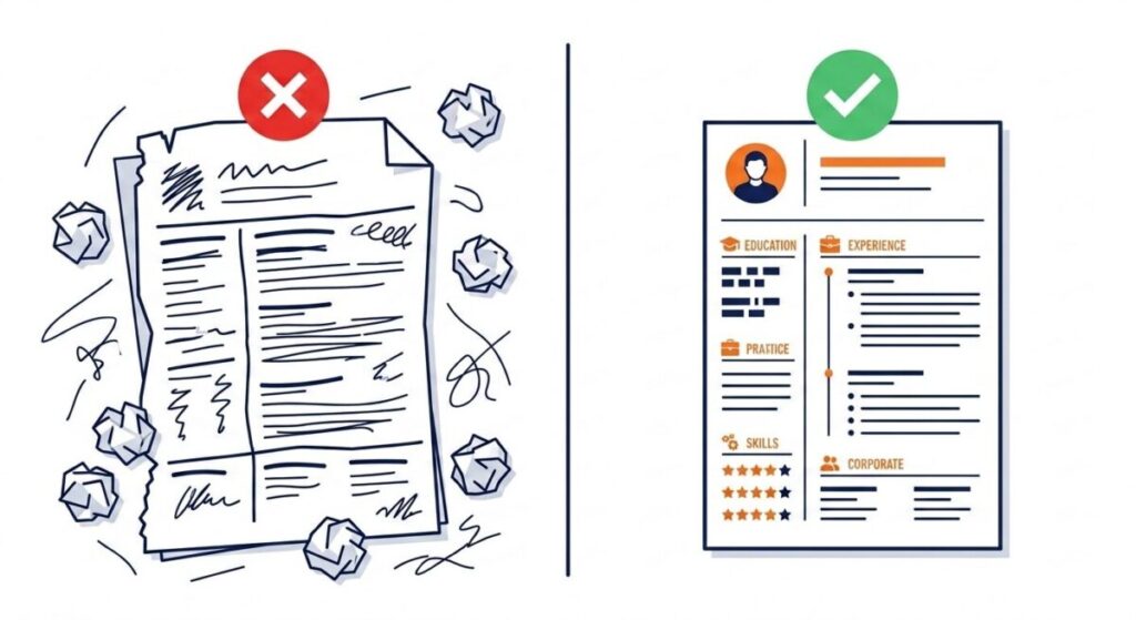 実は、書類選考で落ちる原因の多くは 「経歴やスキルの問題」ではなく「書類の見せ方」 にあります。