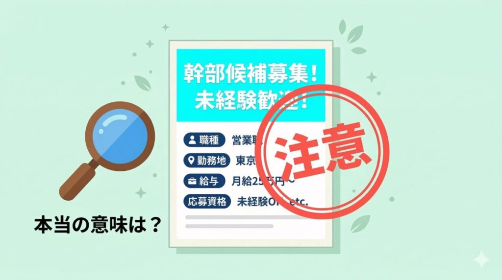 - 「未経験歓迎 × 幹部候補」の組み合わせは特に注意