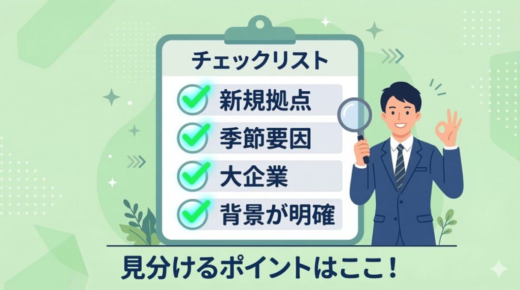 - ただし、新規拠点・大企業・明確な募集背景がある場合は安全なケースもある