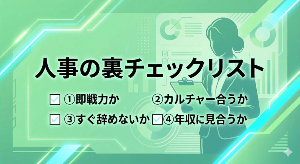 | ④年収に見合うか | 「この年収を払うだけの価値がある?」 |
