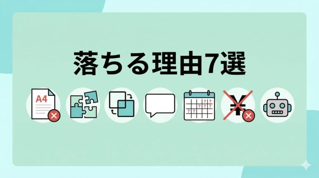 ここからが本題です。人事として実際に書類選考を行ってきた経験をもとに、落ちる理由を7つに絞って解説します。