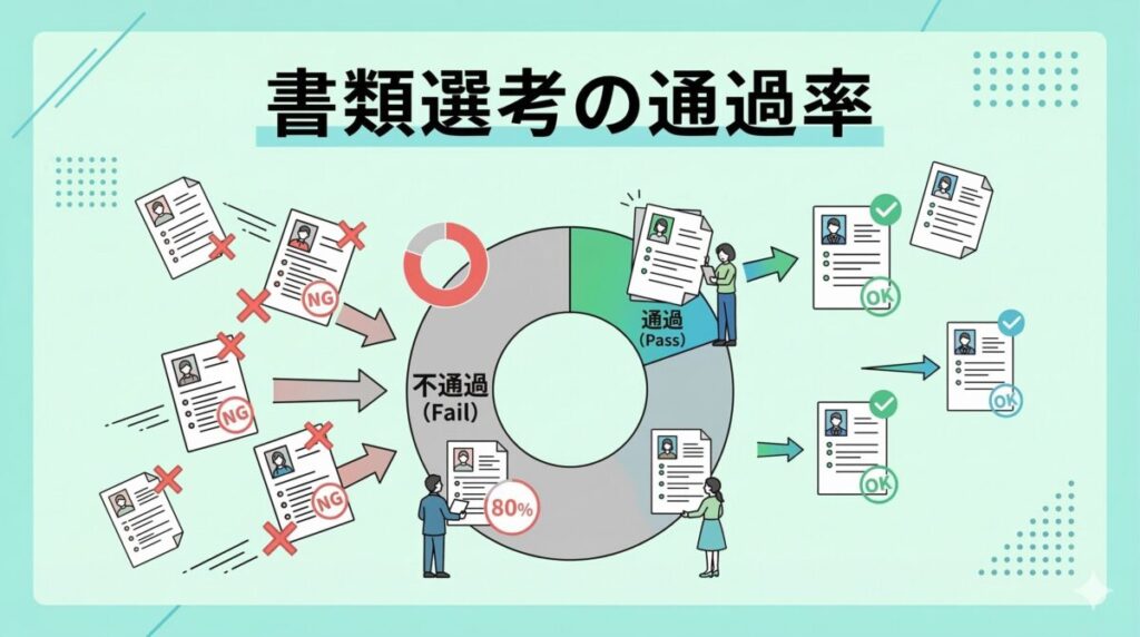 書類選考の対策を考える前に、まずは「そもそもどのくらいの確率で通るものなのか」を把握しておきましょう。